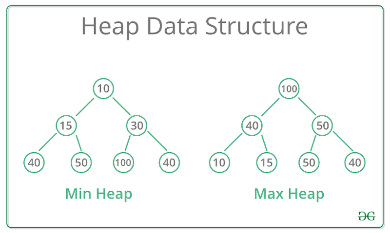 - 데이터에서 최대값과 최소값을 빠르게 찾기 위해 고안된 완전이진트리