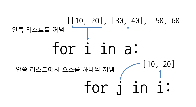 - i에 리스트 내의 리스트를 꺼내온다.